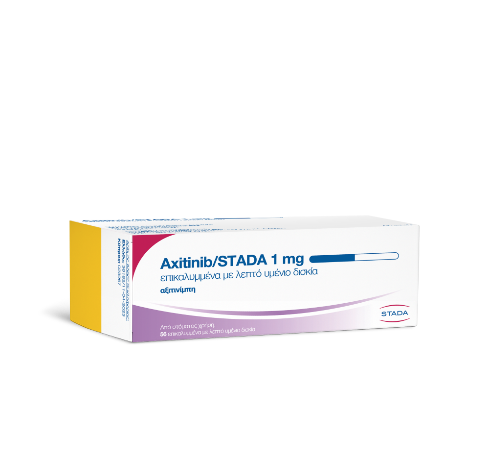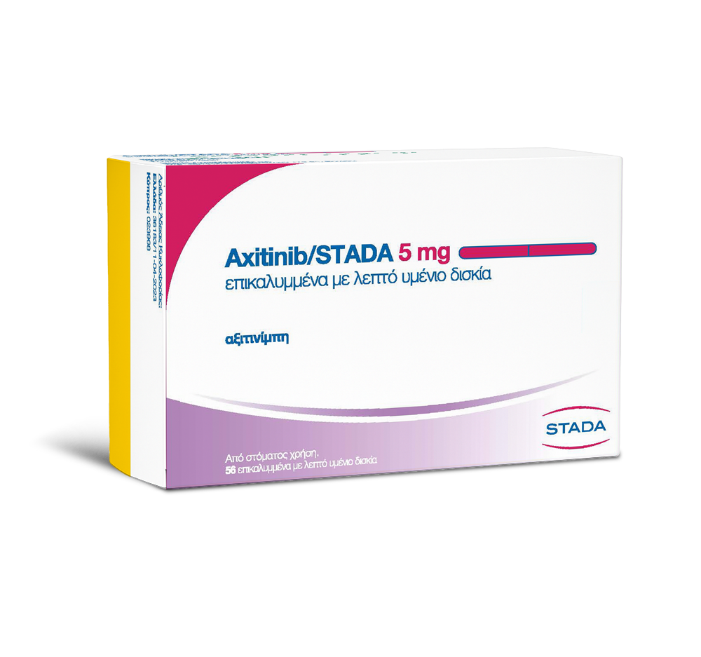 Το Axitinib/STADA ενδείκνυται για τη θεραπεία ενηλίκων ασθενών με προχωρημένο νεφροκυτταρικό καρκίνωμα (RCC-Renal Cell Carcinoma) μετά από αποτυχία προηγούμενης θεραπείας με sunitinib ή κυτοκίνες.
